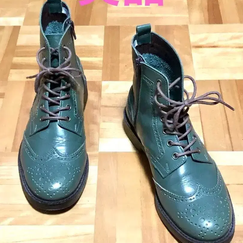 메달리온 장식이 들어간 클래시컬한 분위기의 레이스업 부츠입니다. 발가락 끝을 조이지 않고 볼륨을 억제한 앞코 실루엣, 7홀로 조절한 길이는 부드러운 느낌의 스커트 스타일이나 양말과의 코디네이트를 즐길 수 있습니다. 신을수록 부드러워지며 멋이 살아나는 천연 가죽을 사용했으며, 안쪽의 지퍼로 신고 벗기 편리합니다. 아웃솔은 합성 크레이프 솔로 부드러운 착용감을 제공합니다. 레이스업 부츠가 처음이신 분께도 꼭 신어보시길 권하는 한 켤레입니다.