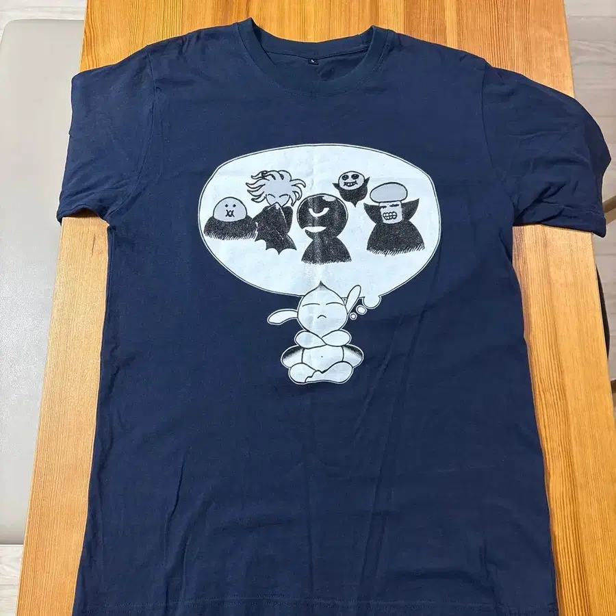 캐릭터 그래픽이 특징인 네이비 T셔츠, 사이즈 L. - 색상: 네이비 - 디자인: 캐릭터 그래픽 - 사이즈: L 방문해 주셔서 감사합니다.