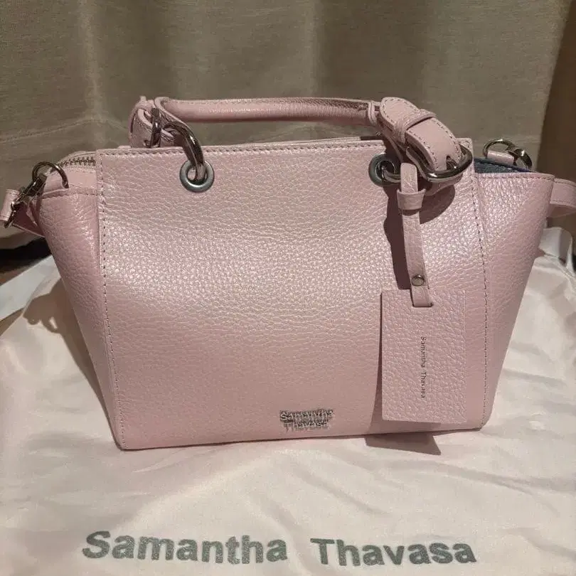 핑크색 가죽 핸드백, Samantha Thavasa의 스타일리시한 디자인.