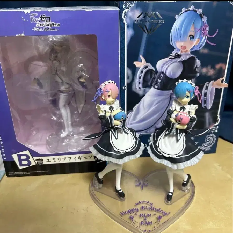 Re: 제로부터 시작하는 이세계 생활 피규어 3개 세트입니다. 내용 제일복권 B상 에밀리아 피규어 (2020년 출시) 제일복권 A상 렘 라무 피규어 (2018년 출시) 렘 피규어 winterMade image ver (2021년) 렘 라무 피규어만 박스가 없습니다. 나머지 2개는 박스 있음으로 발송합니다. 가격 인하 상담 접수받고 있습니다.