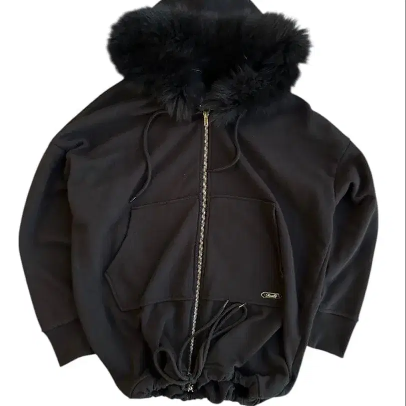 • 퍼 후드 블랙 짧은 기장 다운 자켓 y2k 그런지