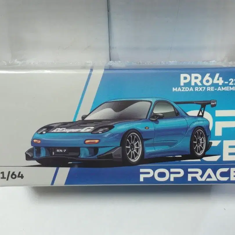 팝 레이스 1/64 마쓰다 RX7 RE:아메미야 와이드 바디 블루 크롬