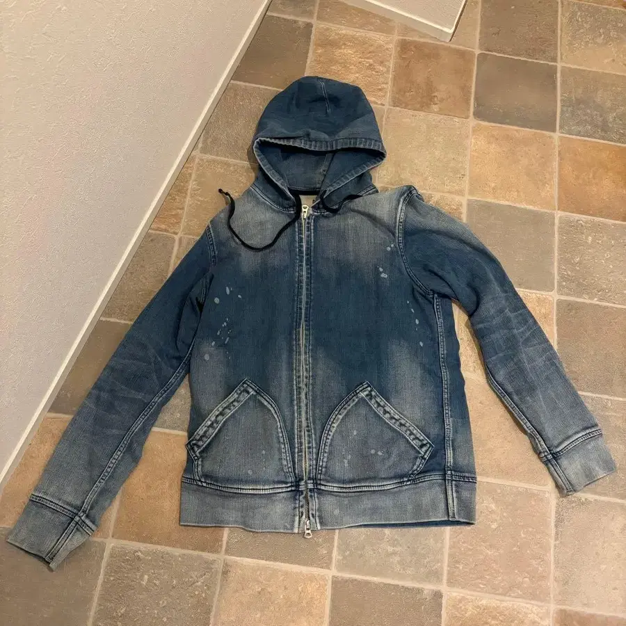 YANUK L 사이즈 데님 패턴 맨투맨 원단 집업 후드 부착 야누크