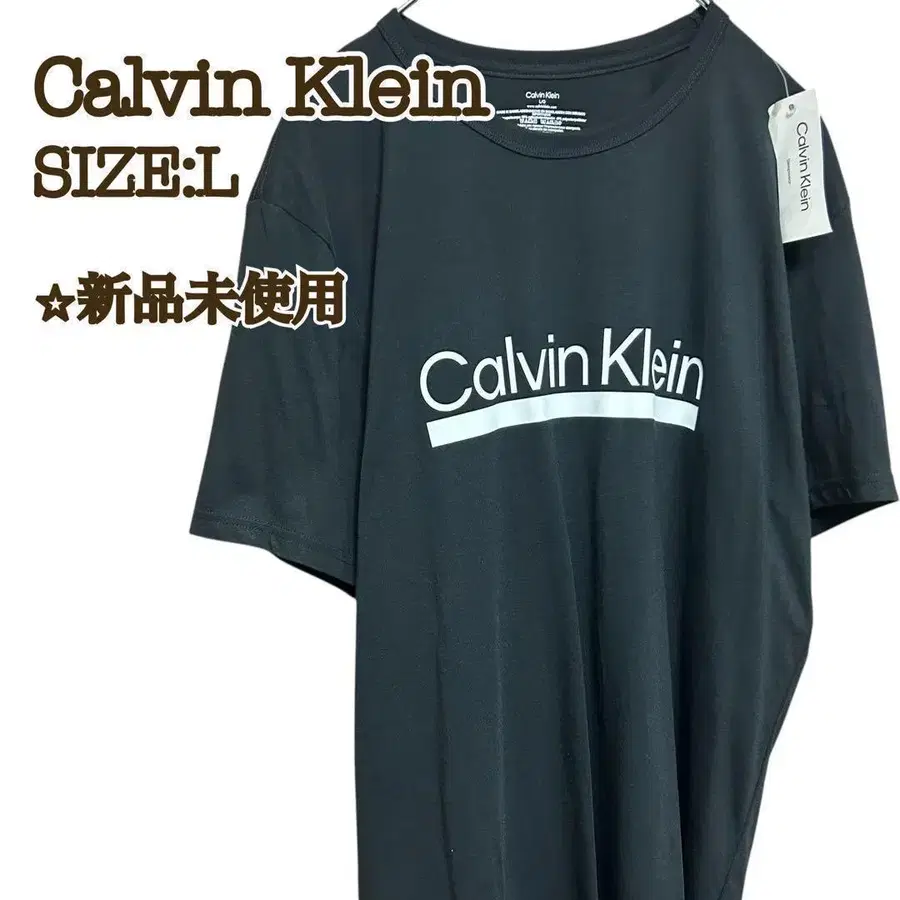 [ 새상품 ] 캘빈클라인 T셔츠 L 블랙 센터 로고 언더라인