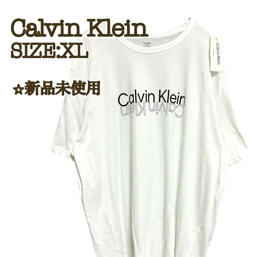 [ 새상품 ] 캘빈클라인 T셔츠 XL 화이트 미러 로고 센터 로고