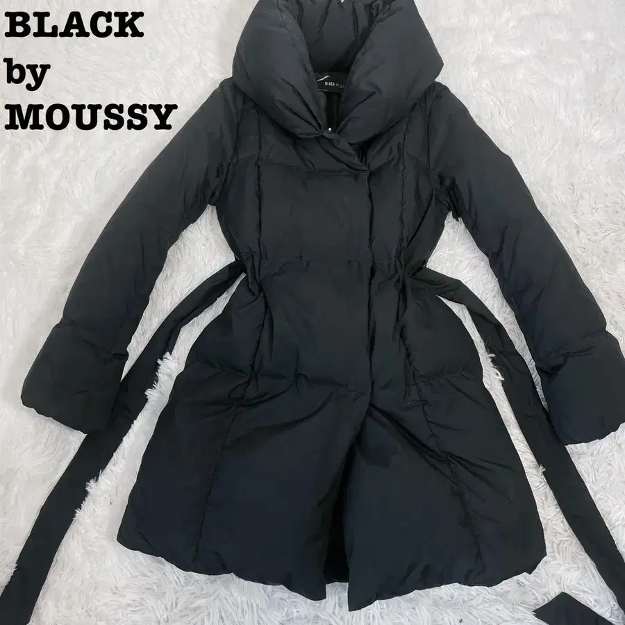 1647a1030 후드 부착된 블랙 다운 자켓, 허리 벨트가 있어 스타일리시한 디자인.