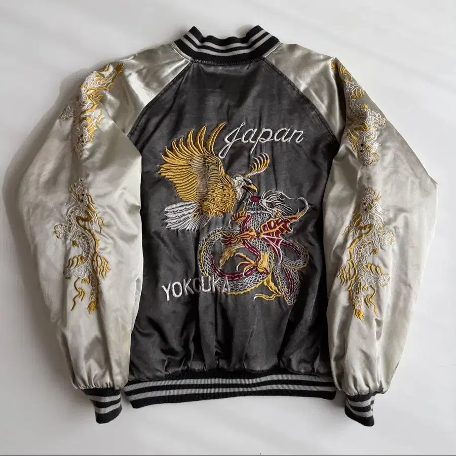 독수리와 드래곤 자수가 들어간 스카잔. - 색상: 그레이/실버 - 디자인: 자수 (독수리와 드래곤) - 텍스트: YOKOHAMA, JAPAN - 스타일: 스카잔 - 소매 디자인: 양쪽 소매에 독수리 자수 방문해 주셔서 감사합니다.