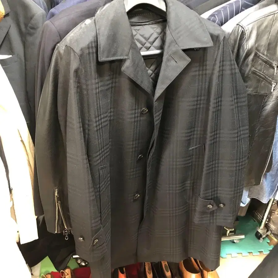 새상품급 HILTON TIME 블랙 체크 트렌치코트