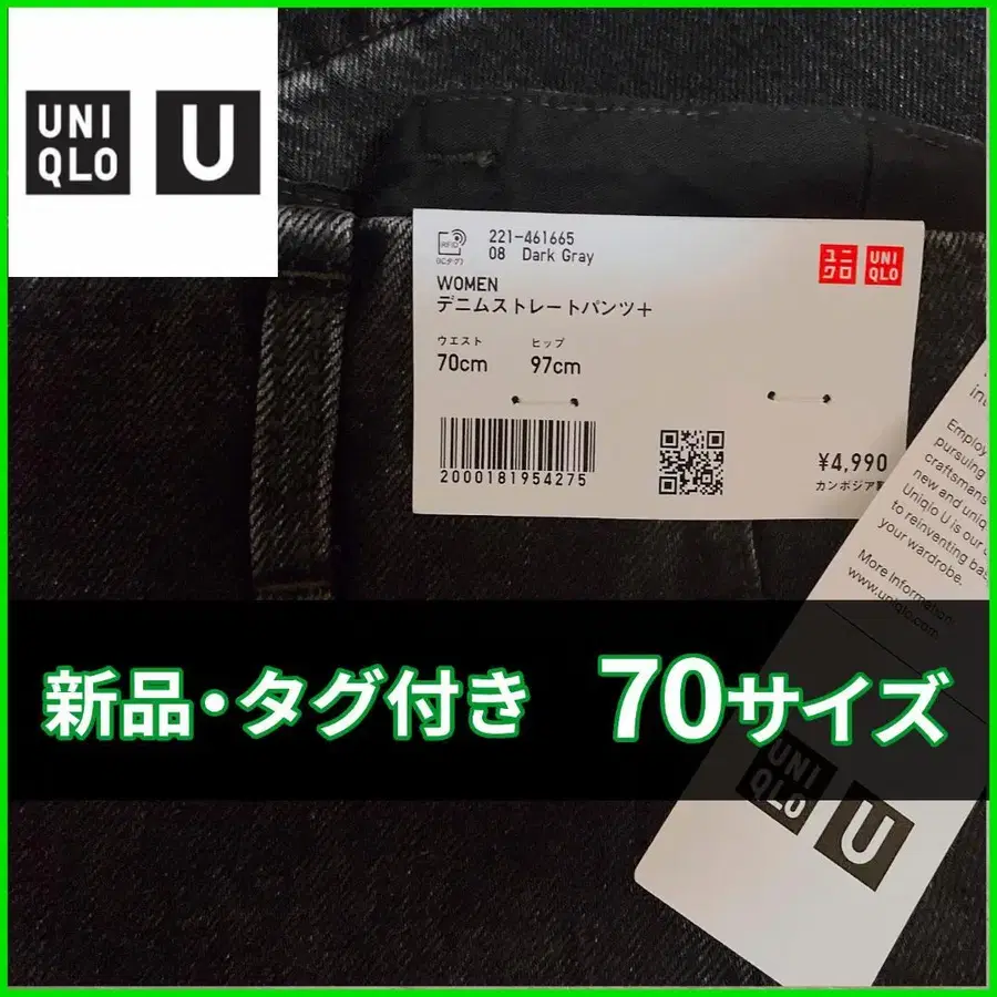 유니클로 U 데님 스트레이트 팬츠 70 사이즈 다크 그레이 461665