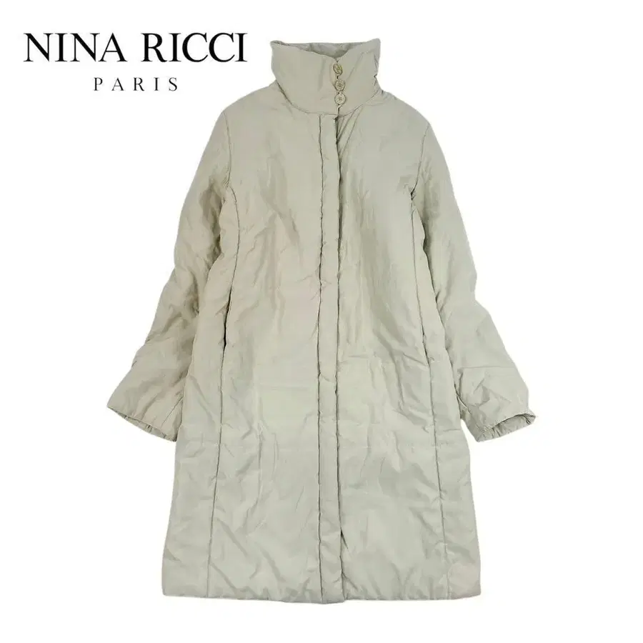 NINA RICCI 니나리치 스탠드 카라 베이지 계열 충전솜 롱 코트 다운 코트 아우터 가을/겨울 방한 여성용 사이즈 38 M