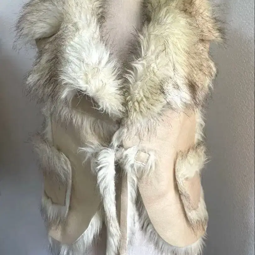 • SALOON 핑크 베이지 인조 모피 베스트 새상품급
