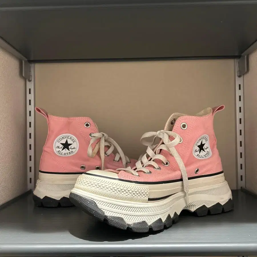 CONVERSE 핑크 통굽 하이컷 스니커즈 평상복 사이즈 24.5