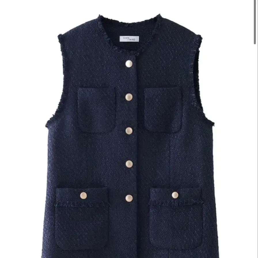 트렌디한 트위드 원단으로 완성한 베스트. 메탈릭 버튼과 모던한 트위드가 클래시컬한 분위기를 연출하는 유행하는 아이템입니다. 약간 루즈한 실루엣이라 세레모니나 출퇴근은 물론, 티셔츠나 데님을 맞춰 캐주얼하게 연출할 수 있는 자켓처럼 걸칠 수 있는 베스트입니다.