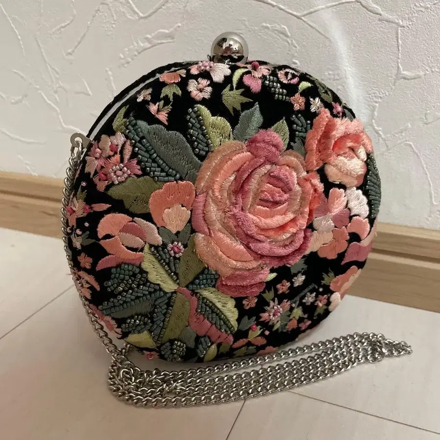 자라 고스로리 장미 자수 비즈 장미 벨로아 숄더백