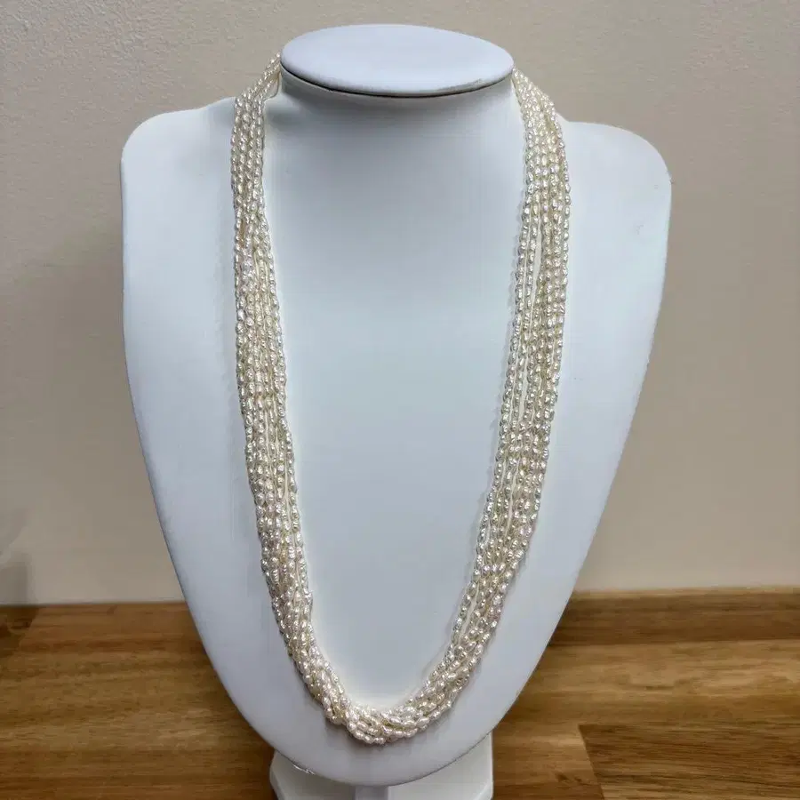 화이트 담수 펄 클로징 도금 목걸이 7연