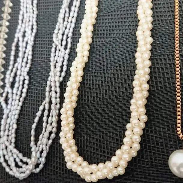 고급스러우면서도 화려한 펄 디자인의 다양한 컬러 목걸이 세트입니다! 포멀부터 캐주얼까지, 다양한 장면에서 사용하실 수 있는 세트입니다 ♪ 이 목걸이들은 진짜 진주 목걸이일 가능성도 있습니다만, 판단이 어려워 펄 디자인 목걸이로 판매합니다. 실버 컬러의 클로징에만 SILVER 각인이 있습니다. - 색상: 화이트 - 부속품: 귀걸이 - 디자인: 이중 펄 목걸이 - 색상: 실버 #츠바사판매목록 ↑ 다른 판매 목록은 여기서 보실 수 있습니다 ╰(*´︶`*)╯ 매일 조금씩 판매 예정이니, 괜찮으시다면 봐주세요 (*ˊᵕˋ* ) #츠바사액세서리 ↑ 대략적으로 장르별로 나눈 것입니다. 괜찮으시다면 활용해 주세요 (*ˊᵕˋ* ) 진주