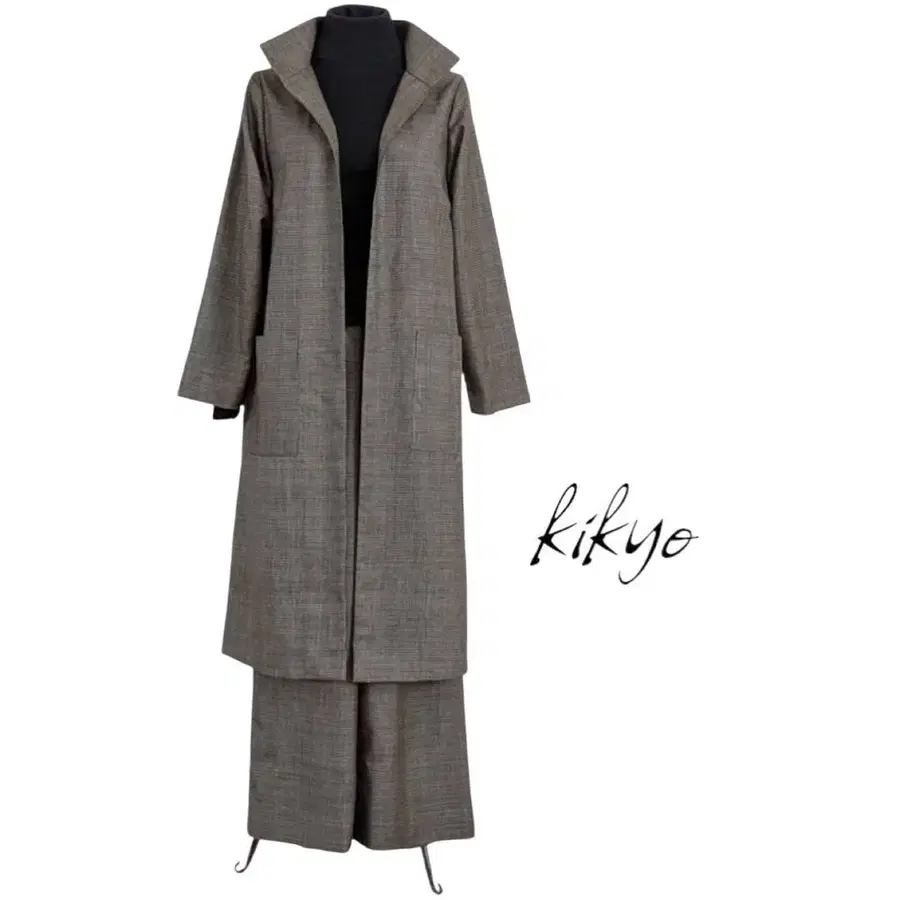요건 레일 울 면 혼방 브라운 셋업 터틀넥