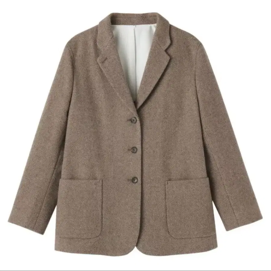 무인양품 재생 울 혼방 트위드 자켓 브라운 패턴 XL