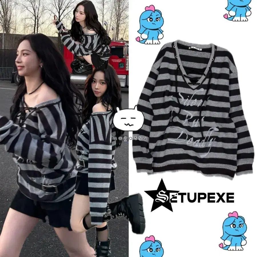 SETUPEXE 스트라이프 V넥 니트 카리나 착용