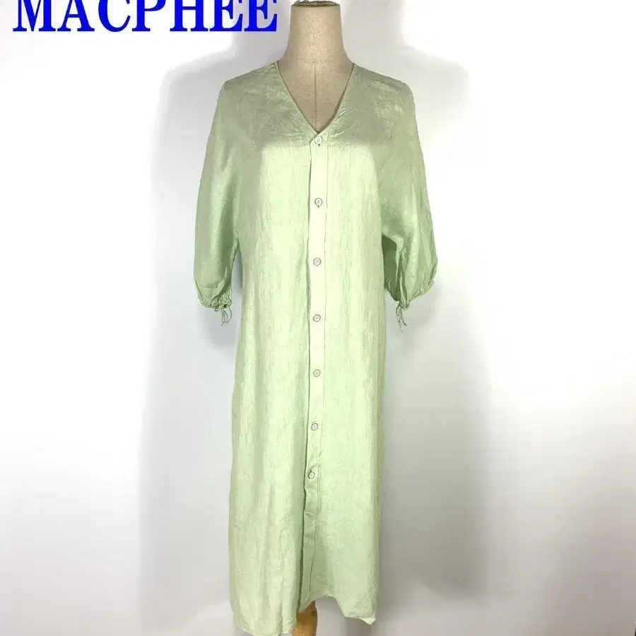 맥피 롱 원피스 7부 소매 린넨 라이트 그린 36 C1190