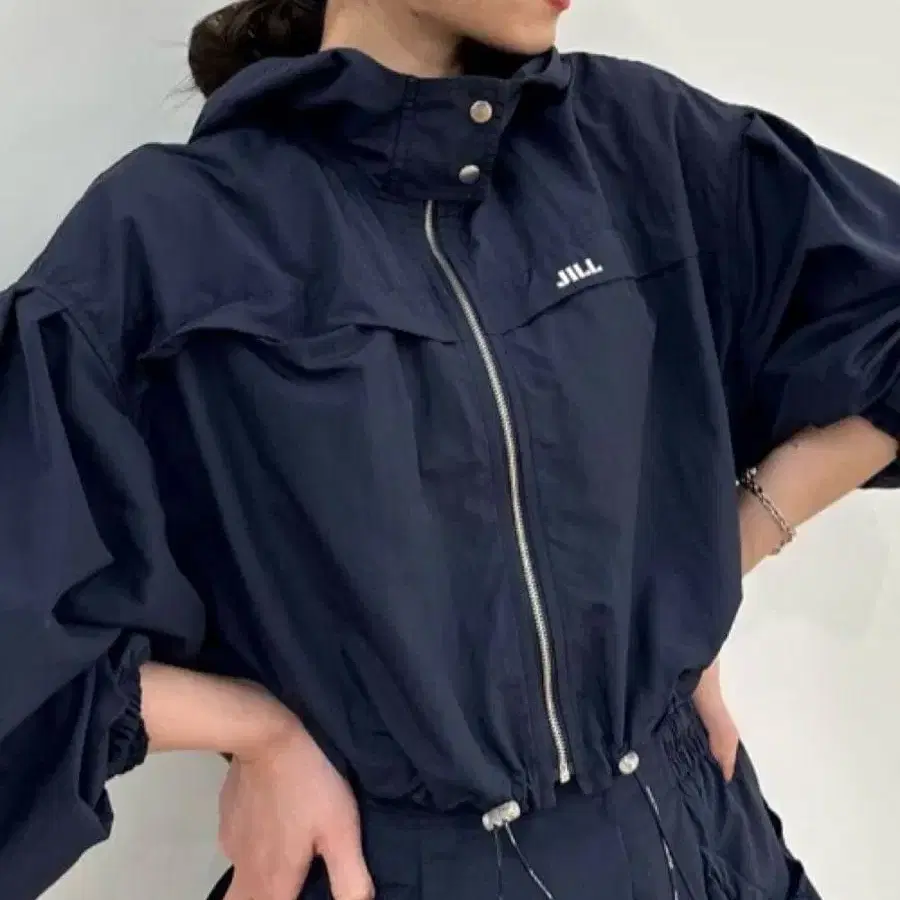 스포티한 나일론 자켓으로 ZIP을 끝까지 잠그고 넥 탭을 잠그면 살짝 올라가는 넥으로. 숏 기장이기 때문에 하이웨스트 하의와 함께 입으면 스타일 UP이 가능합니다. 밑단의 코드(스트링)로 실루엣 조절 가능. 소매는 밴딩 처리되어 있어 팔 걷기가 쉽습니다. 왼쪽 가슴과 밑단의 코드(스트링)에 브랜드 로고 포함.