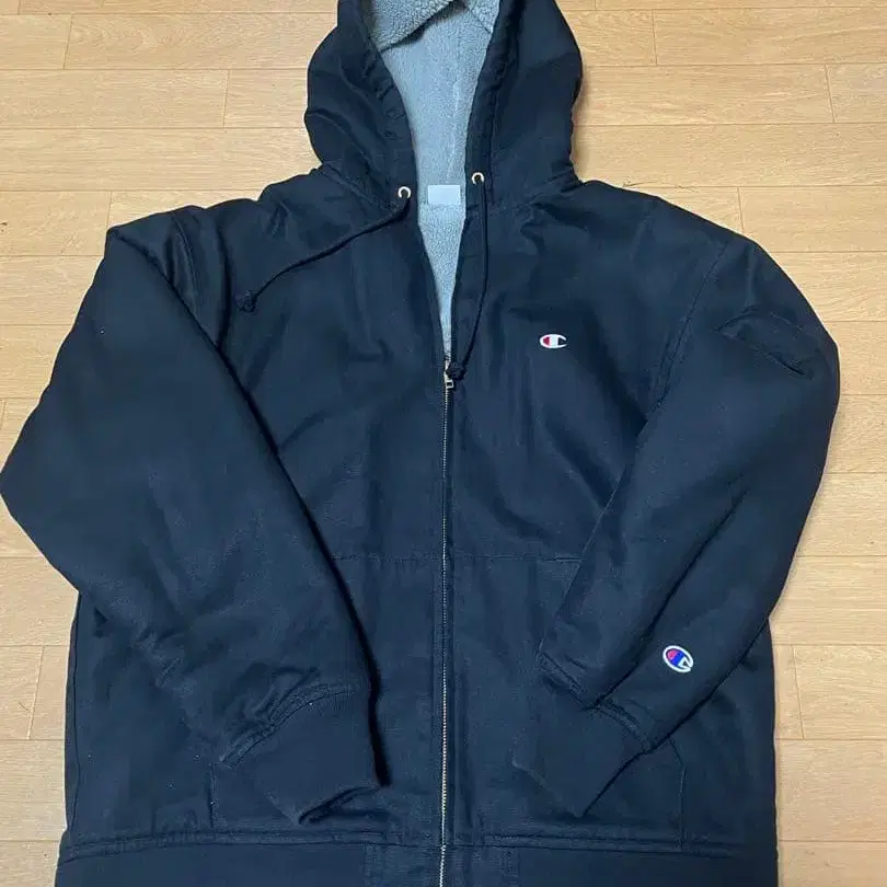Champion 풀 집업 후드 부착 후드티 자켓 L