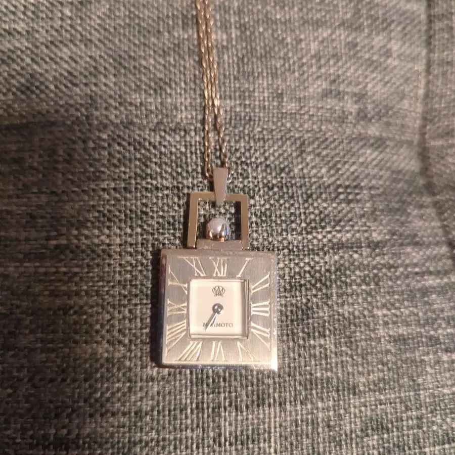 ☆ 11월 4일 이후 주문은 11월 10일경 발송됩니다. 양해 부탁드립니다!! ☆ 로마 숫자 다이얼과 JAL 로고가 특징인 실버 색상 목걸이. 사용 설명서 포함. 눈에 띄는 흠집 등은 없으나, 배터리 방전으로 생각되며 작동 확인은 하지 않았습니다. - 디자인: 로마 숫자 다이얼을 가진 사각형 펜던트 - 소재: 실버 색상 금속제, 펄 장식 - 브랜드: JAL MIKIMOTO - 특징: 뒷면에 JAL 로고 각인 있음, - 체인 길이: 표준적인 목걸이 길이 약 68cm 방문해 주셔서 감사합니다.