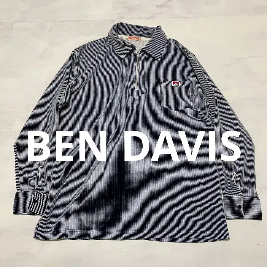 BEN DAVIS 히코리 하프 지퍼 풀오버 긴팔 셔츠
