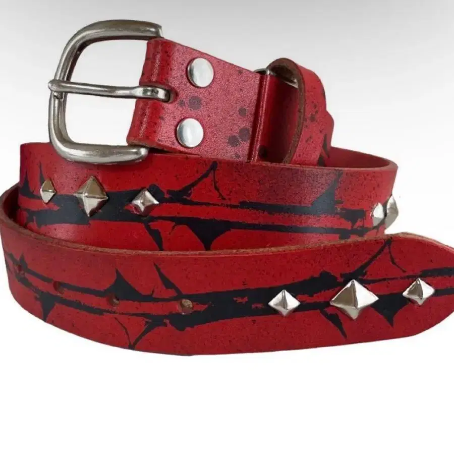 • 00s rujeans 버클 가죽 벨트 / 주홍색 스터드 & 스티치 y2k