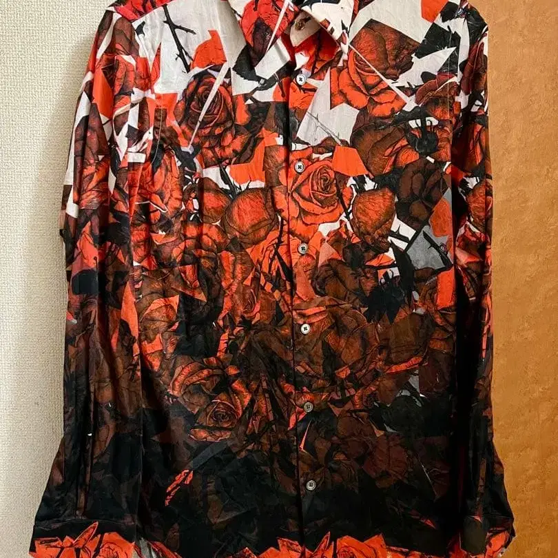 빨간 장미 프린트가 특징인 긴팔 셔츠. - 브랜드: Paul Smith - 디자인: 빨간 장미 프린트 - 색상: 레드/블랙/화이트 - 스타일: 긴팔 셔츠 코튼 100% 폴스미스 장미 꽃무늬