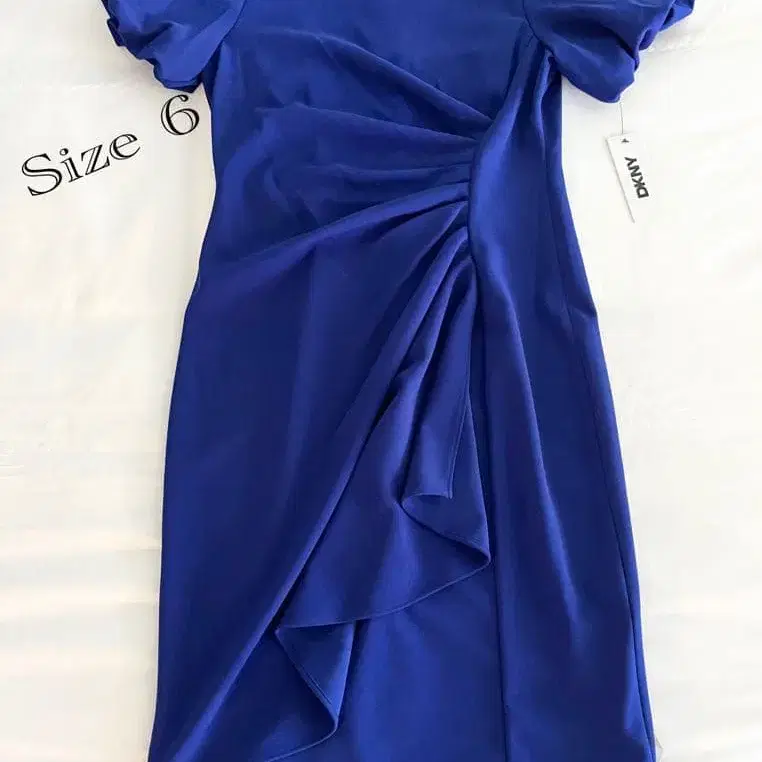 DKNY 파랑 드레이프 디자인 반팔 원피스