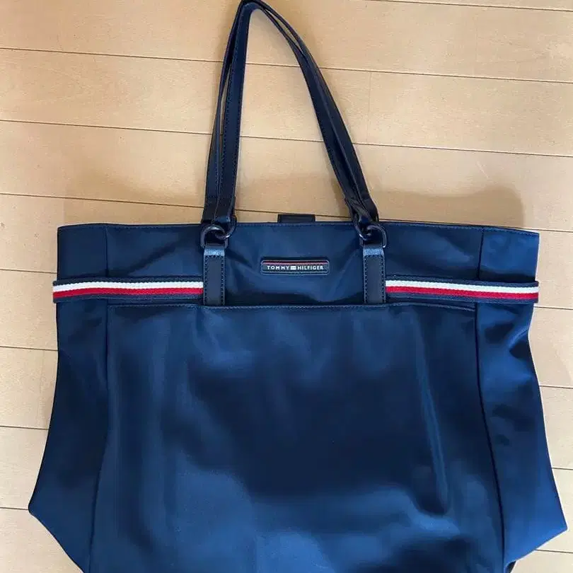 사용 빈도가 줄어 판매합니다. A4 사이즈 서류도 여유롭게 들어가는 사이즈입니다. 어깨끈 부분에 늘어남이 있습니다. 사진으로 확인해 주시면 감사하겠습니다. 네이비 색상의 나일론 토트백, 스트라이프 악센트 포함. - 브랜드: TOMMY HILFIGER - 색상: 네이비 - 디자인: 스트라이프 악센트 - 소재: 나일론 방문해 주셔서 감사합니다. 색상 - 네이비 계열 특징 - 바닥 있음