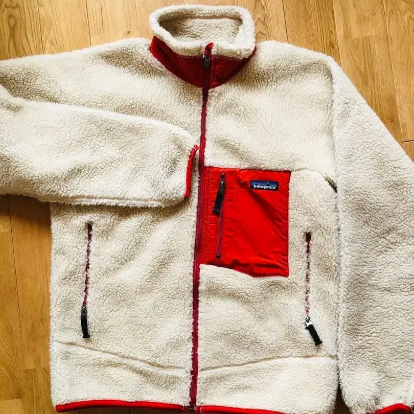 patagonia 플리스 자켓 S 크림/빨간색