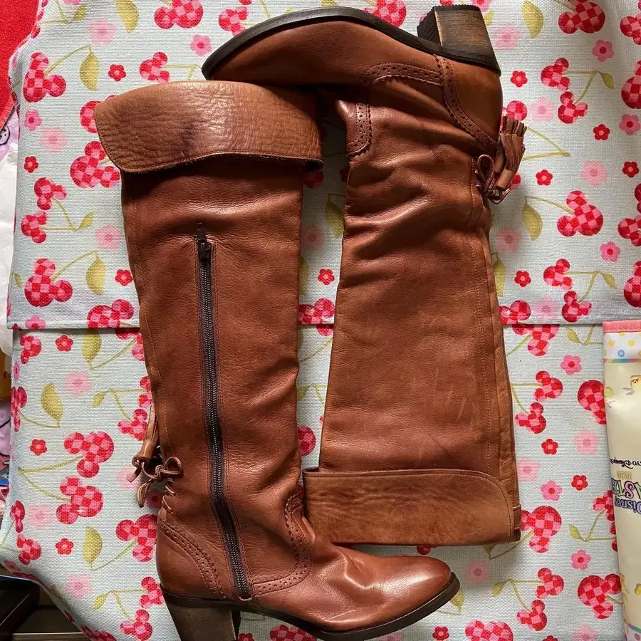 카멜 가죽 롱 부츠 니하이 부츠 태슬 포함 2way 소가죽 천연 가죽