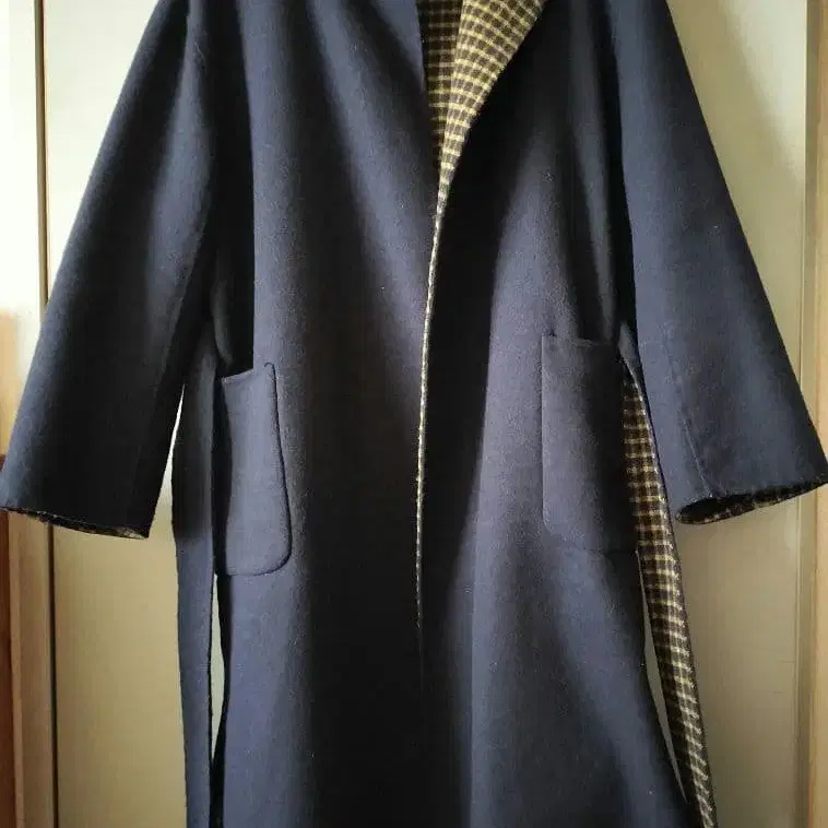 suadeo 네이비 롱 코트 리버서블 허리 벨트 포함
