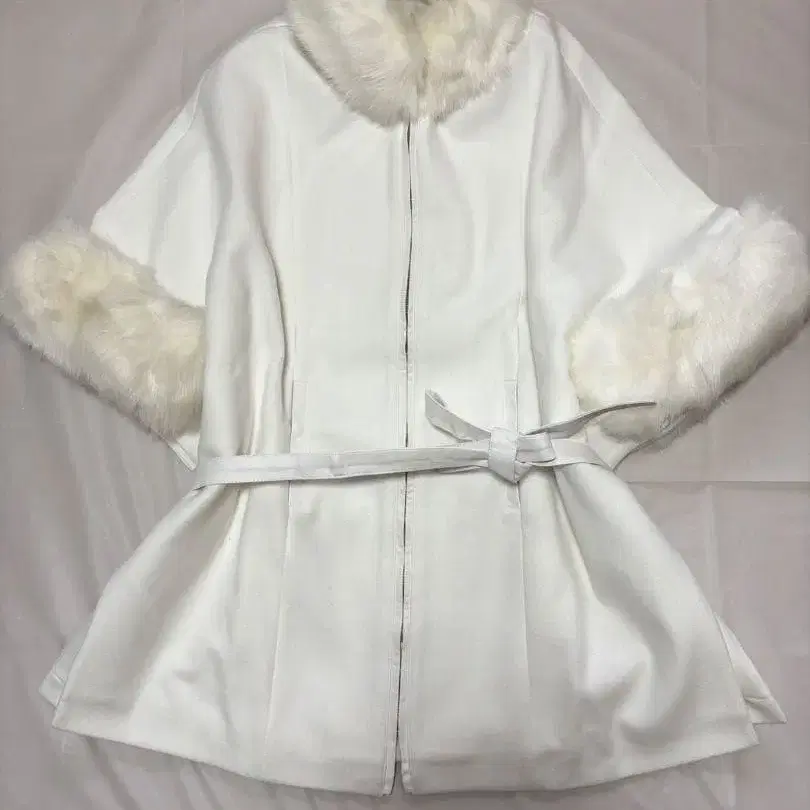 미사용 새상품 벨트 포함 퍼 판초 코트 화이트