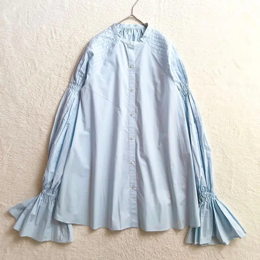 택 포함 새상품 에트레토쿄 캔디 슬리브 턱 블라우스 블루 완판템