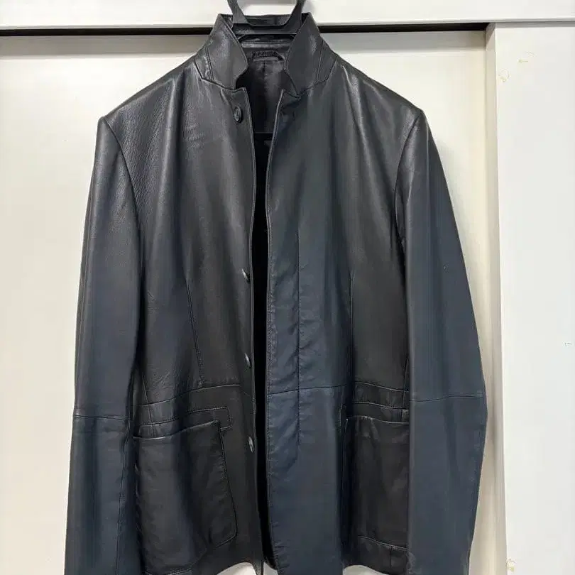 캘빈클라인 가죽 자켓 스탠드 카라입니다. 색상은 블랙입니다. 부드러운 가죽 질감입니다. 육안으로 보았을 때 눈에 띄는 흠집이나 노후화는 없습니다. 본체 양가죽 안감 큐프라, 폴리에스테르 기장 70cm 어깨 너비 44cm (직선 기준) 가슴 너비 52cm 소매 길이 63cm