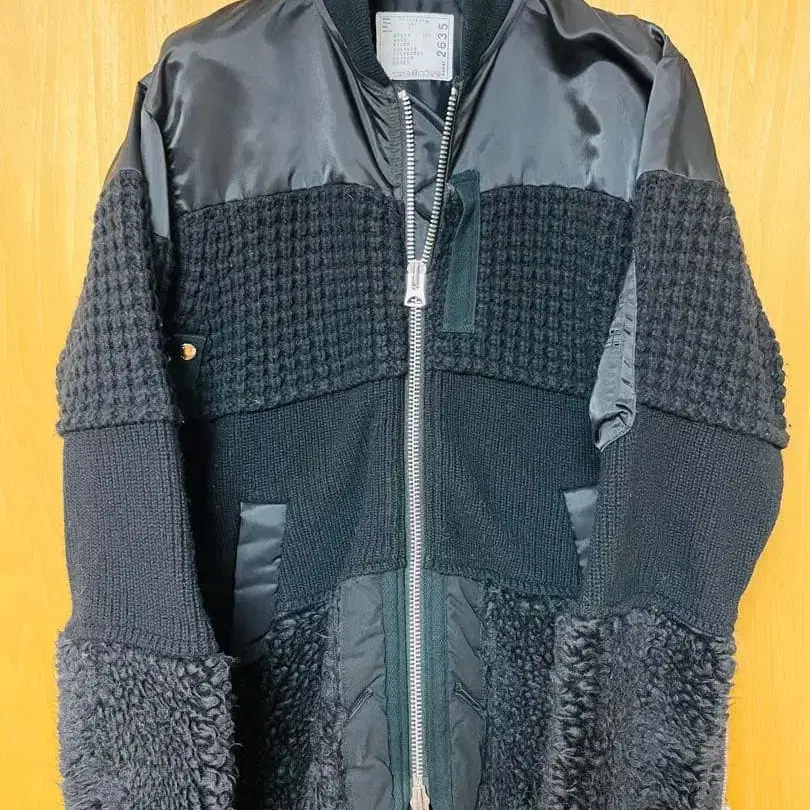 sacai 온라인 스토어에서 새상품으로 구매한 니트 소재의 MA-1 자켓입니다. 색상: 블랙 사이즈 1 기장 69, 어깨 너비 52, 가슴 너비 58, 소매 길이 63cm 상태 1시즌 착용하여 약간의 보풀이 있습니다. 특별히 눈에 띄는 얼룩 등은 없습니다. 빅 실루엣입니다. 소재는 니트, 플리스, 나일론으로 구성된 도킹 MA-1입니다.