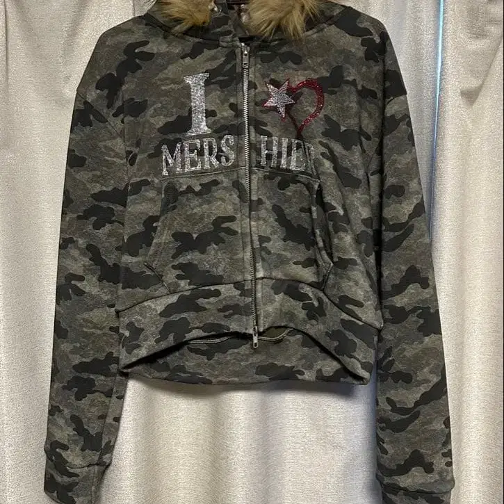 y2k 카모 패턴 퍼 후드티