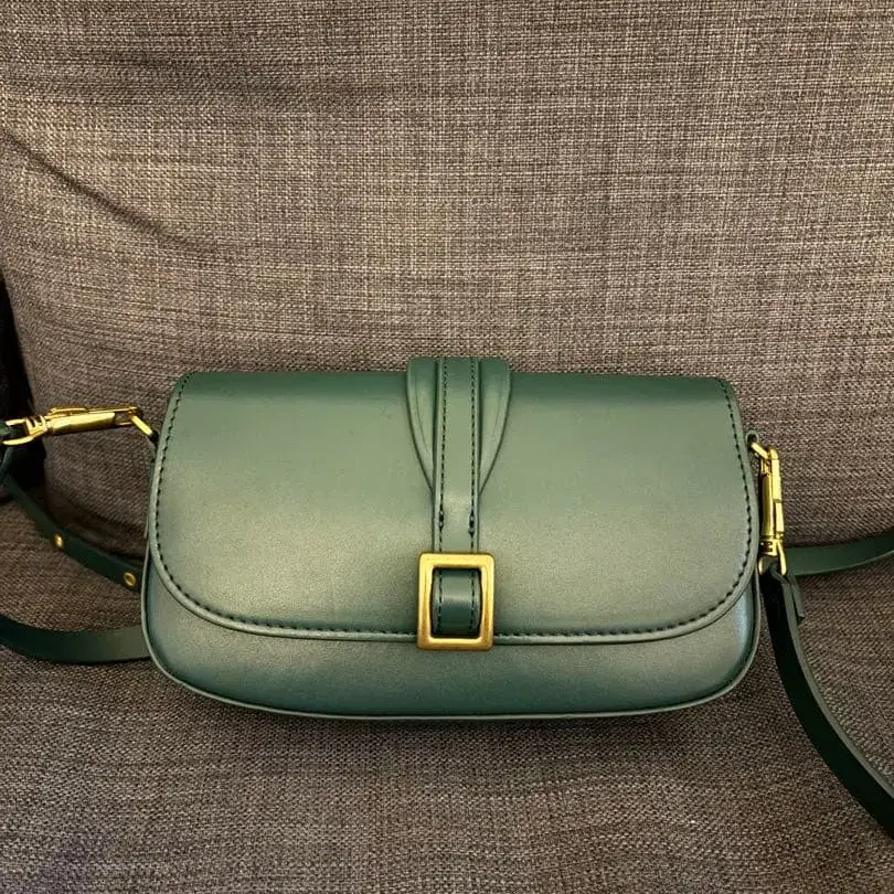 ZARA 다크 그린 숄더백. 2023년에 구매. - 색상: 다크 그린 - 디자인: 플랩 숄더백 - 금장 장식 색상: 골드 - 스트랩 타입: 조정 가능한 숄더 스트랩 - 사이즈: 손바닥보다 조금 더 큰 정도. 자세한 상태는 사진으로 확인해 주세요. 반려동물 및 흡연자 없음.