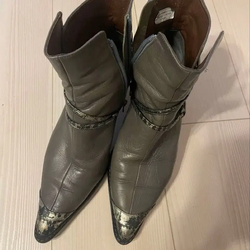엘레강스 히미코 그레이 가죽 스틸레토 부츠