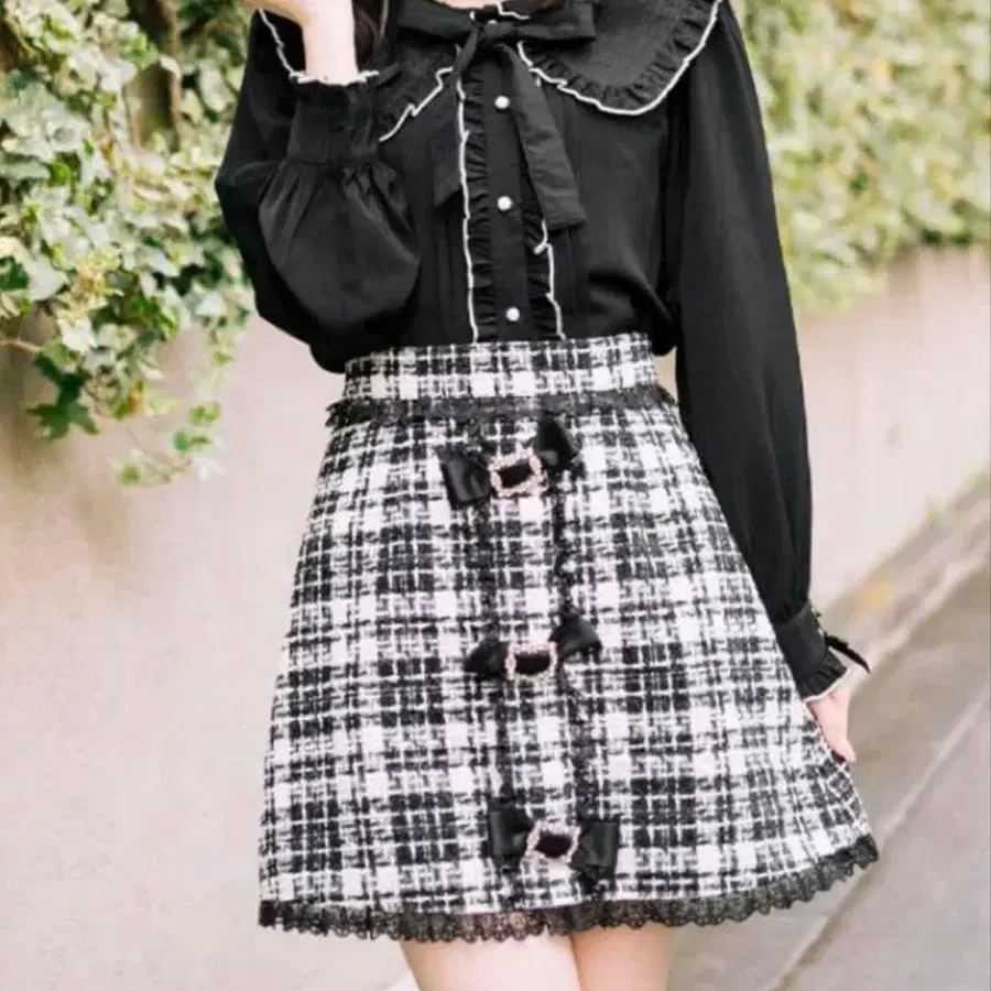 로지타 트리플 리본 트위드 사다리꼴 스커트