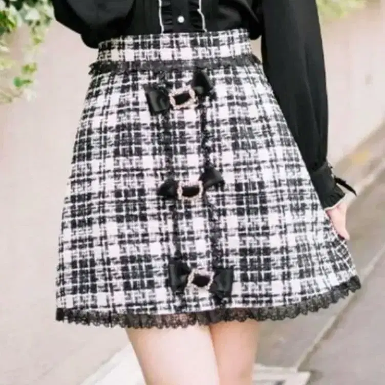 로지타 트리플 리본 트위드 사다리꼴 스커트