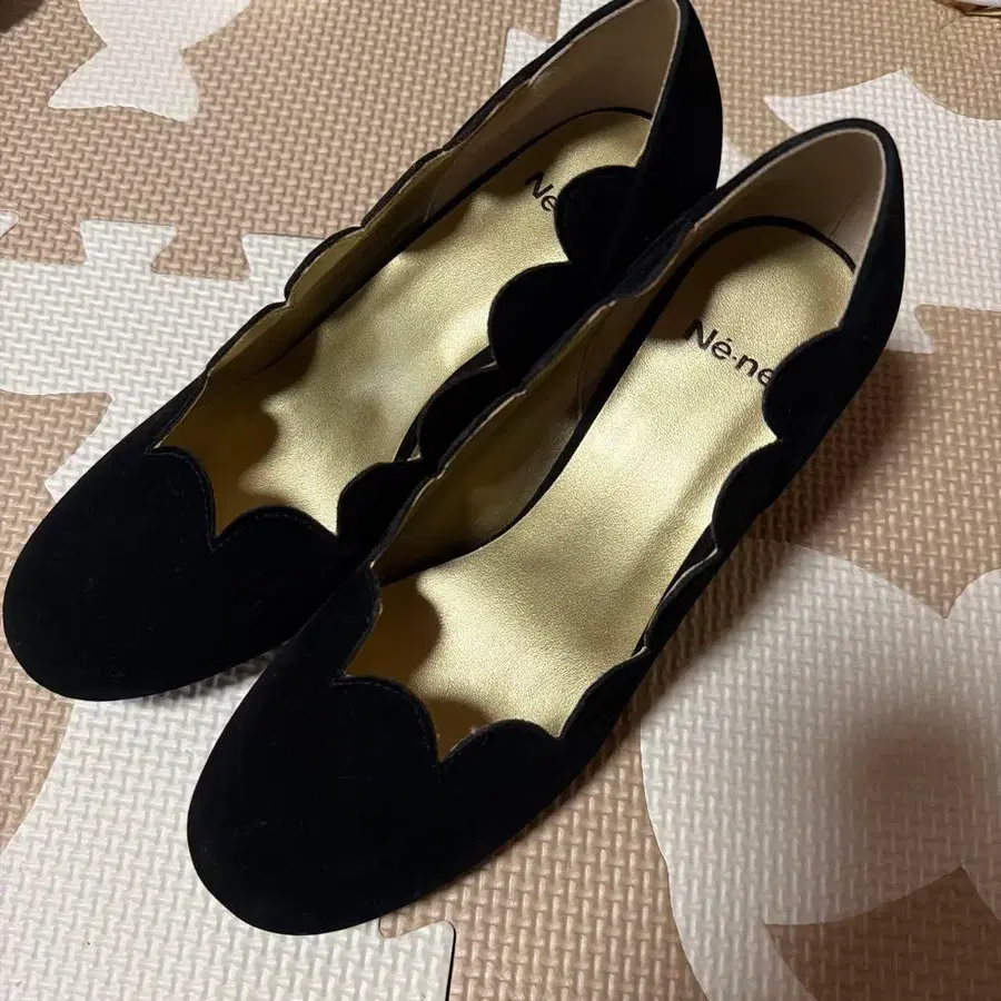 네넷 네넷 스웨이드 펌프스 블랙 와이드 힐 스칼라 디자인 사이즈 2