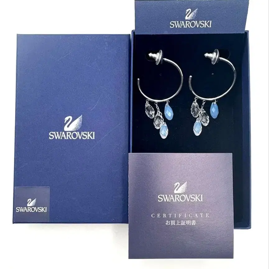 스와로브스키 파란색 비즈 포함 드롭형 크리스탈 후프 귀걸이 박스 포함