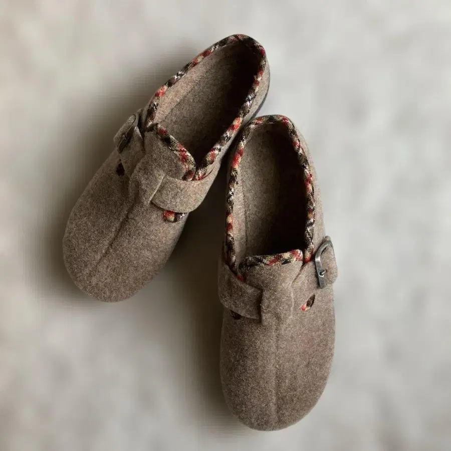 * 울 소재의 라이트 브라운 클로그 샌들, 테두리에 체크 무늬를 사용한 점이 포인트입니다 ♪ - 색상: 브라운 계열 - 소재: 울 소재 - 스타일: 클로그 샌들 - 클로징: 버클 포함 - 생산국: 프랑스 * 사용감 없이 전체적으로 깨끗합니다. * 전용 상자는 없으므로, 발송은 리사이클 자재를 사용하여 간편 포장으로 발송해 드리니 양해 부탁드립니다. 방문해 주셔서 감사합니다.