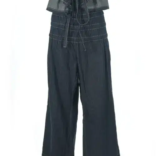 [ 실측치수(cm) ] 가슴 너비:45.5cm, 허리:104cm, 힙:122cm, 인심:71cm, 허벅지:75cm, 밑단 둘레:62cm, 기장:117.5cm