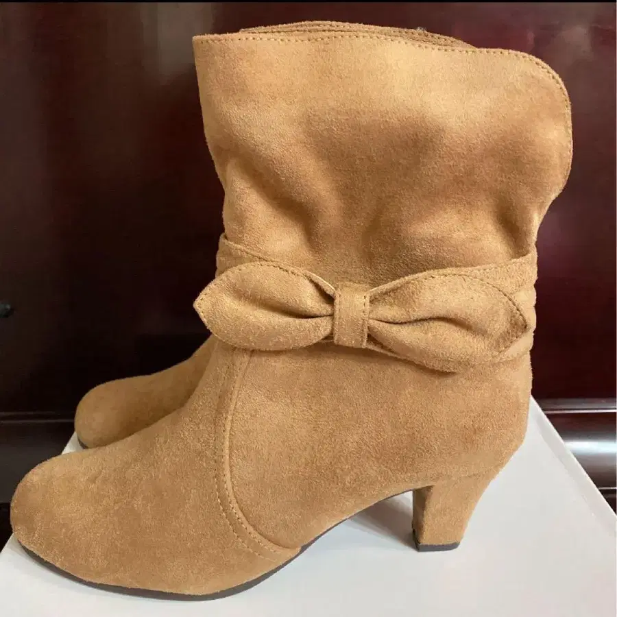 리본 포함 라이트 브라운 스웨이드 부츠 누벨 보그 숏부츠