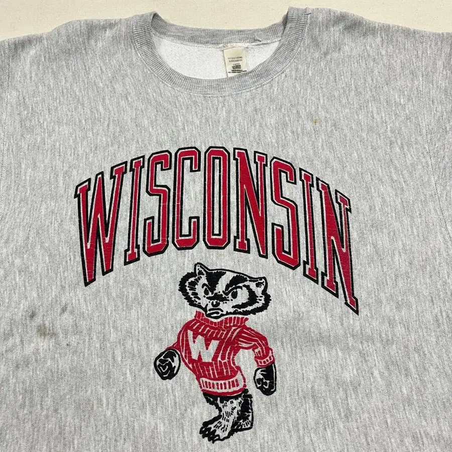 [생산국] 미국 [소재] 코튼 95% 아크릴 5% [item 상세] 1980-1990년대 무렵의 VF Imagewear 스웨트 셔츠. 인기 있는 마스코트인 버키가 들어간 프린트. 좋아하시는 분은 꼭 만나보세요. [size] Large 어깨 너비 52cm 가슴 너비 59cm 소매 길이 63cm 기장 72cm [컨디션] 눈에 띄는 얼룩 등 없음. 위스콘신 스웨트 셔츠 칼리지 프린트 아메카지 미국 빈티지 의류 245 컬러 - 그레이 계열